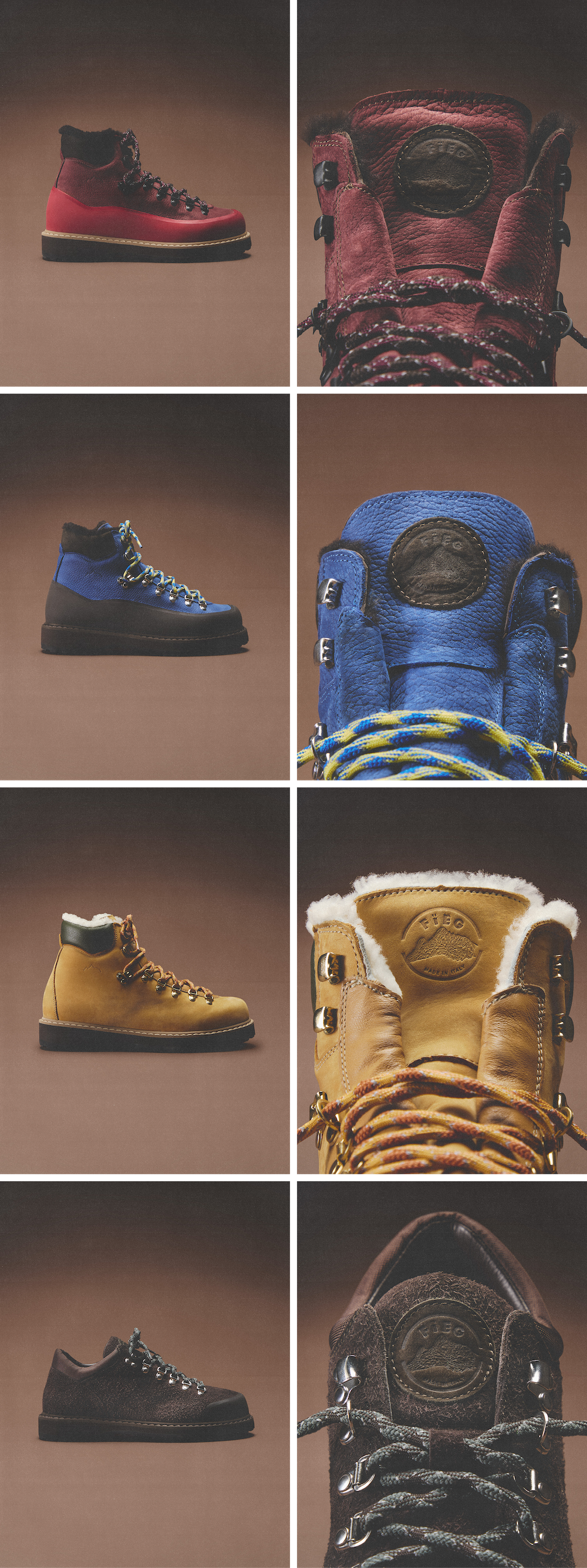 Ronnie Fieg reprises his partnership with Italian mountaineering brand Diemme to present the previously-seen Cornaro in updated materials, and introduce the Roccia Vet Gomma in three exclusive hues, all designed in men's and women's sizing. Enter the drawings before they close tonight at 11:59 PM. Limited quantities will be available tomorrow in store, online, and on the Kith App at 11 AM in New York, London, and Paris timezones.