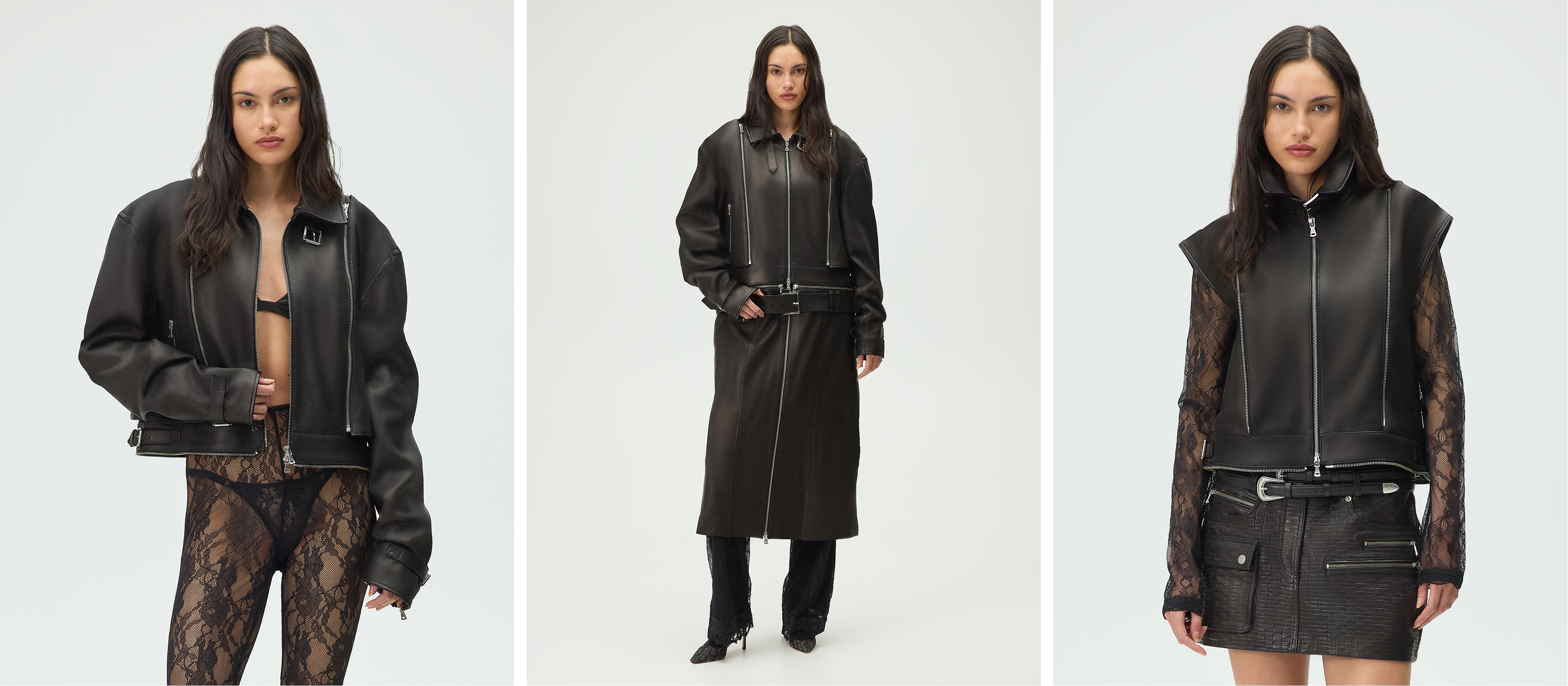 Hera Convertible Leather Coat | | Detachable zippers at the waist and sleeves transform the silhouette into a cropped moto jacket, vest, or belted maxi skirt. | | | | |