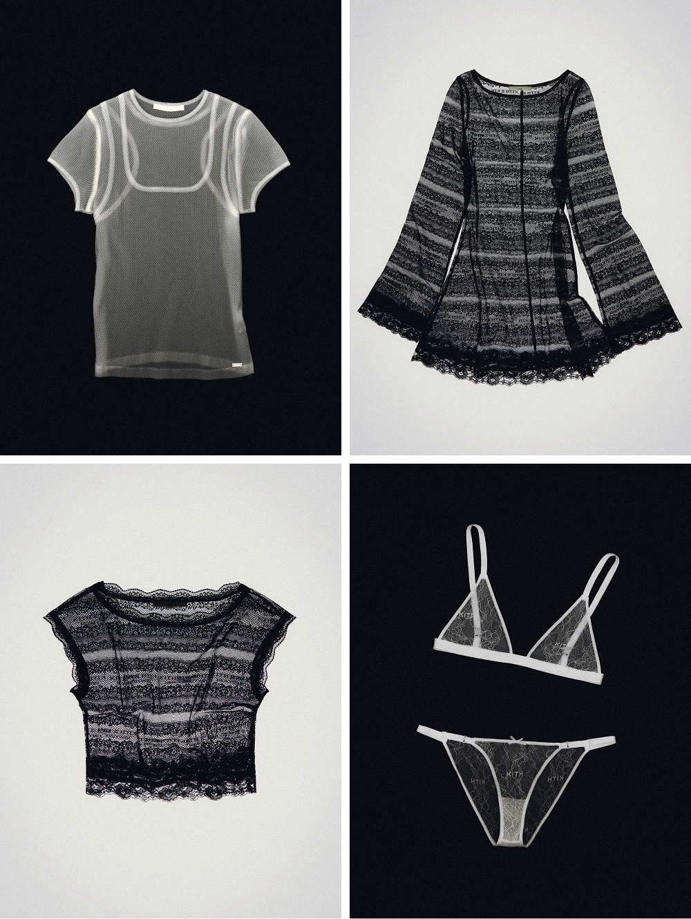 Designed for springtime layering, explore intricate lace complete with woven Kith motifs and mesh staples. | | | | |