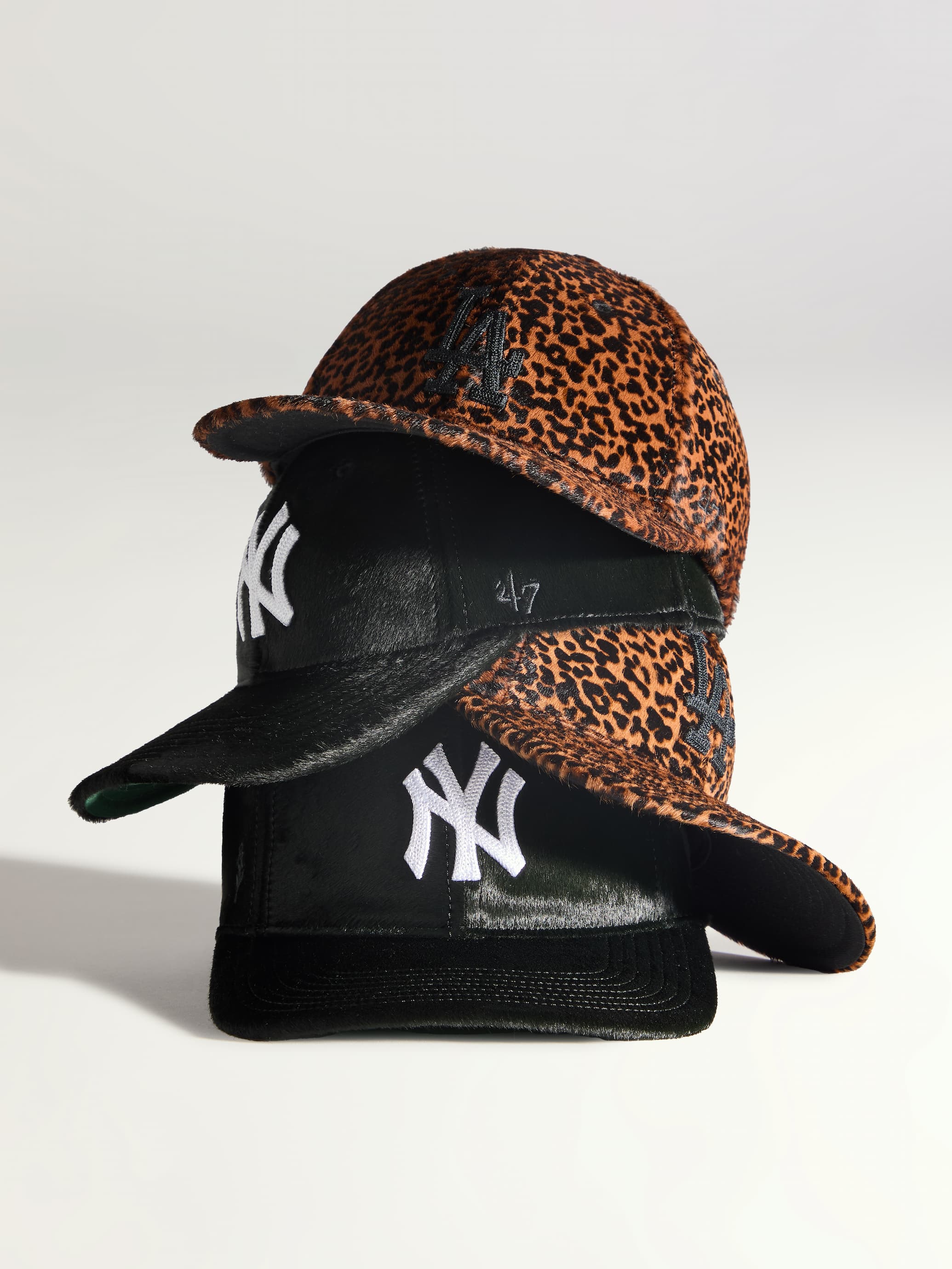 Kith and '47 introduce elevated iterations of the Franchise LS Cap in pony hair fabrications, featuring Los Angeles Dodgers and New York Yankees embroidery. Available tomorrow in store, online, and on the Kith App at 11 AM in New York, London, and Paris timezones.